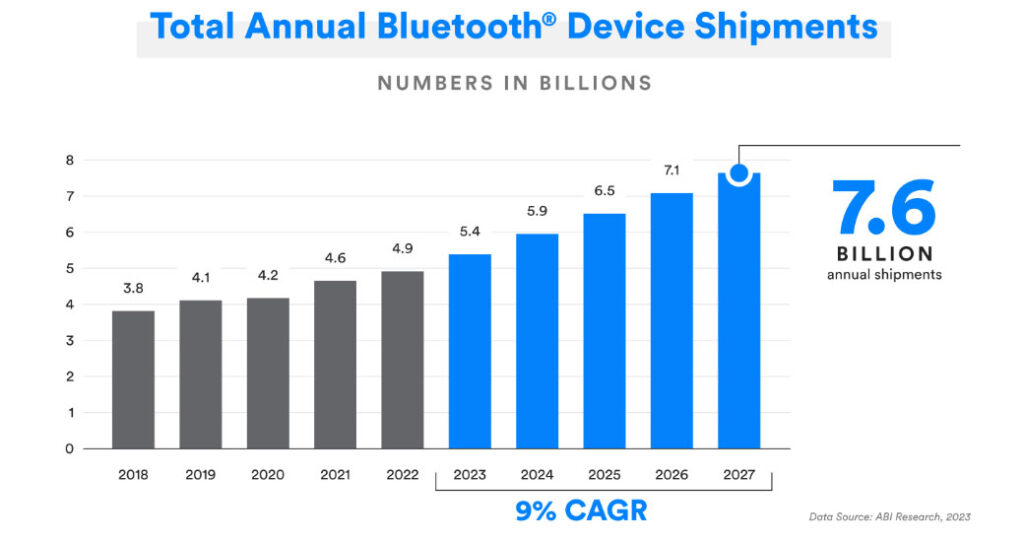 According to analyst data from the Bluetooth official website, annual shipments of Bluetooth devices will reach 7.6 billion units in the next five years, which can be said to be closely related to our life scenarios.